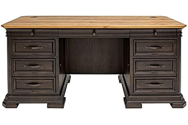 Desk with Solid Wood Plank Top, Fully Assembled, Brown