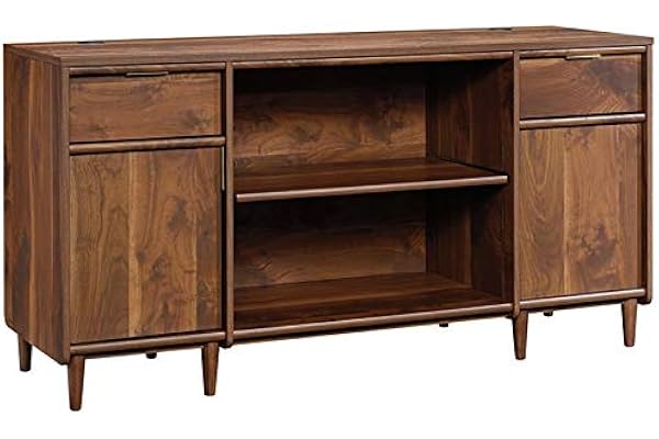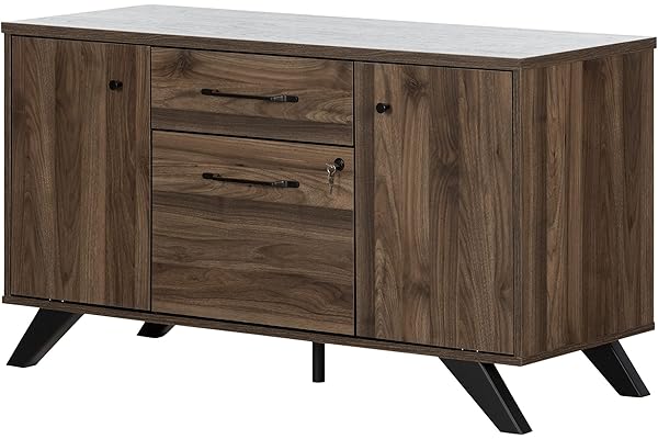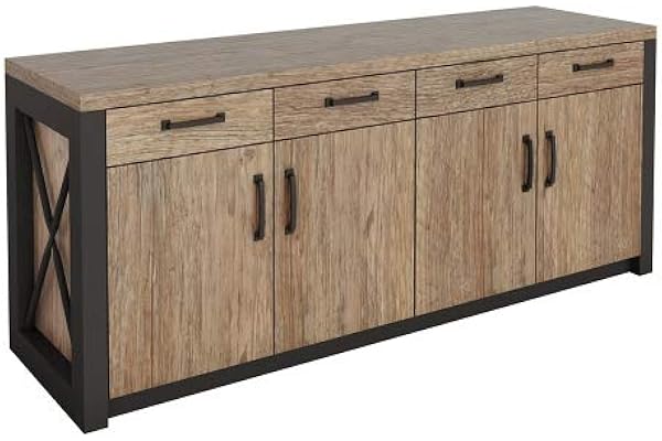 Urban Four Drawer Storage Credenza 72"W x 21"D Weathered Walnut Laminate/Black Accents