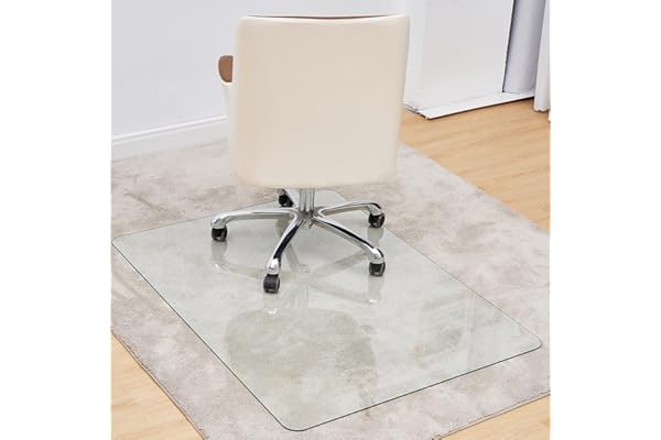 Crystal Clear Glass Chair Mat for Carpet, 46" x 36", 1/5" Thick Office Chair Mat with Beveled Edge, Desk Chair Mat for Hardwood Floor