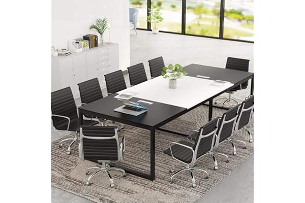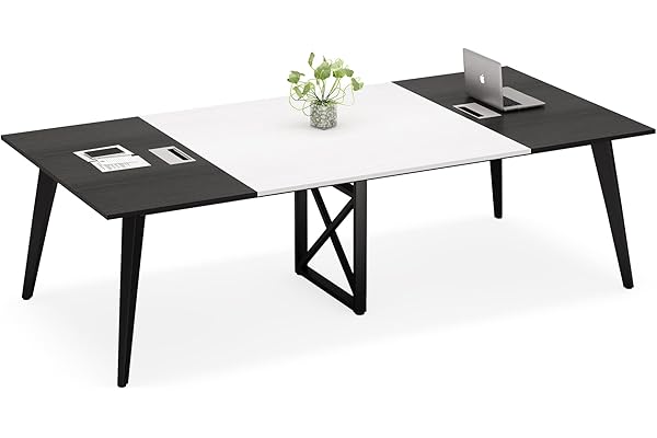 94.5L x 47.2W inch Large Modern Meeting Table, Seminar Training Table with Grommet Holes for Office Conference Room (White+Black)