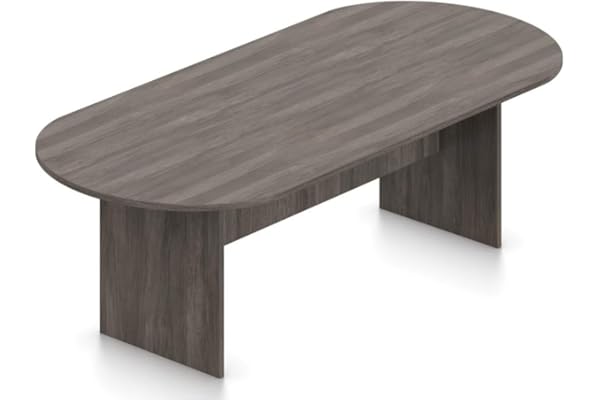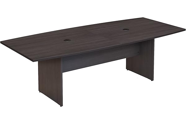 Bush Business Furniture 96W x 42D Boat Shaped Conference Table with Wood Base in Storm Gray