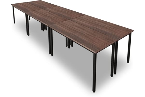 Bonzy Home Conference Tables 12ft Office Computer Desk for Meeting Room Study Writing Printer Table Save Space Design for 14 People Rustic Walnut Brown 6PCS 141.6"x47.2"x29.5"