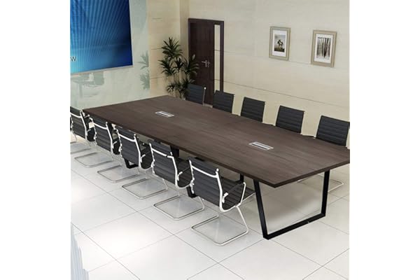 Modern, Stylish Boardroom Desk with Metal Frame & Legs | Easy-to-Assemble Meeting Room Table Keeps Your Cables & Wires Hidden (12 Foot, Dark Brown)