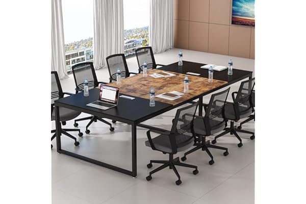 Bonzy Home Conference Tables 6.5ft Large Meeting Room Study Writing Printer Table Office Computer Desk for 8 People Save Space Design Rustic Vintage Brown 4PCS 78.7"x78.7"x29.5"
