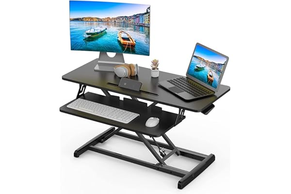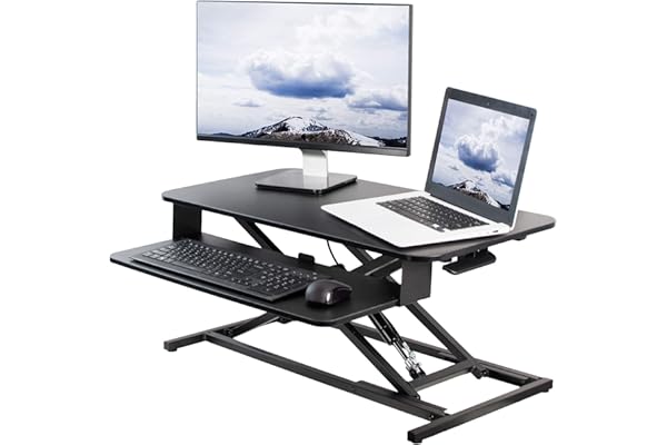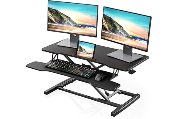 FITUEYES Height Adjustable Standing Desk 36” Wide Sit to Stand Converter Stand Up Desk Tabletop Workstation for Laptops Dual Monitor Riser Black SD309101WB