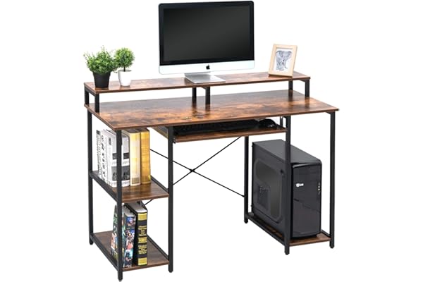 TOPSKY Computer Desk with Storage Shelves/23.2” Keyboard Tray/Monitor Stand Study Table for Home Office(46.5x19 inch, Rustic Brown)