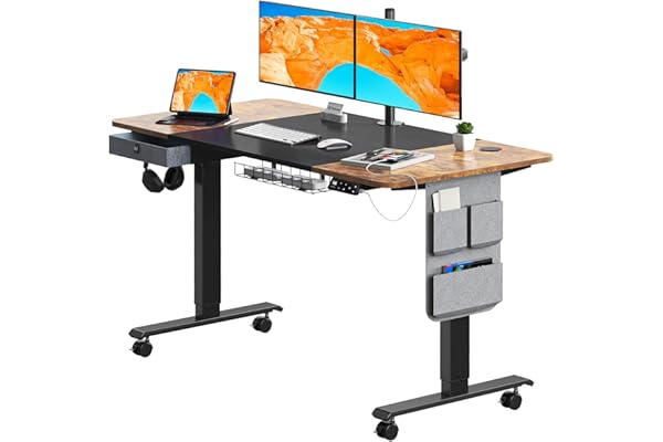 FEZIBO Height Adjustable Electric Standing desk with Double Drawer