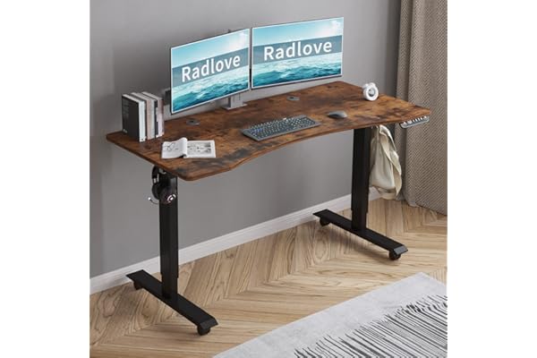 55 x 30'' Radlove Height Adjustable Computer Desk Sit Stand Desk Home Office Desks with Splice Board and A Under Desk Cable Management Tray (Black Frame + Rustic Brown Top)