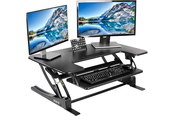 VIVO Black Height Adjustable 36 inch Stand up Desk Converter Quick Sit to Stand Tabletop Dual Monitor Riser
