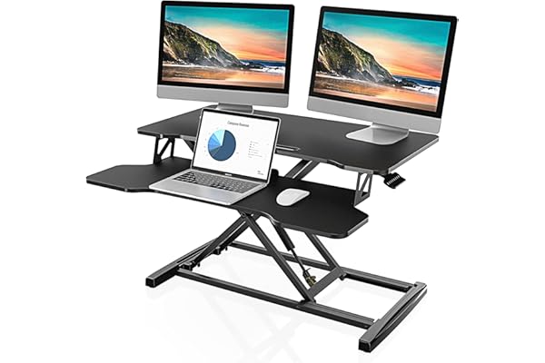 Dual Monitor Standing Desk Converter - Home Office Desk Riser for Standing or Sitting - 11 Height Adjustable Desk Settings w/Spring Loaded Lift - Fully Assembled, Black