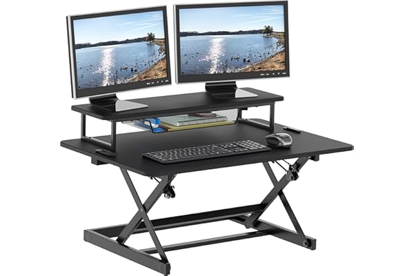 34 inches Height Adjustable Ergonomic Tabletop Workstation Riser Fits Dual Monitors Black