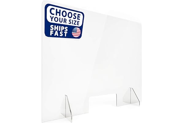 Large, Sturdy ¼” Acrylic Plexiglass Shield | USA-Made, Fast Shipping, 30 Second Setup | Plexiglass Barrier for Counter, Reception, School, Office (Multiple Sizes)