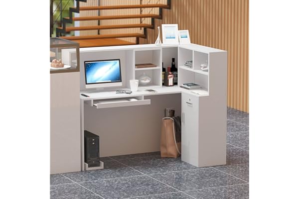 Homsee Reception Desk L-Shaped Office Desk with Counter