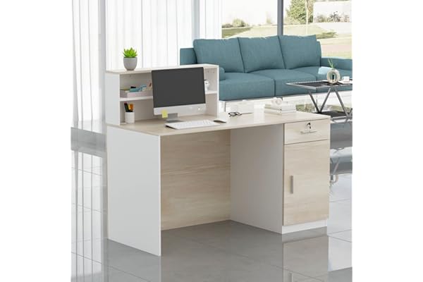 Reception Counter Desk with Lockable Srotage Drawers, for Salon Reception Room Checkout Office, Natrual (55.1" L x 23.6" W x 43.3" H)