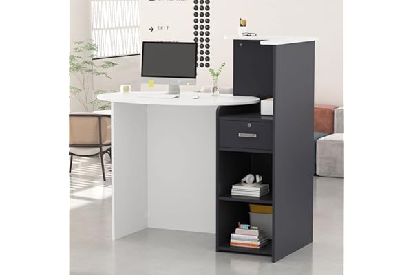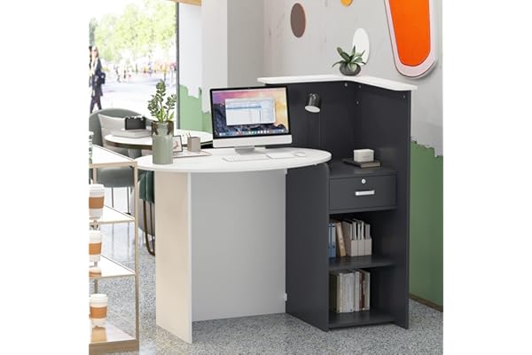 AGOTENI Reception Desk Reception Stations with Open Shelf & Drawers
