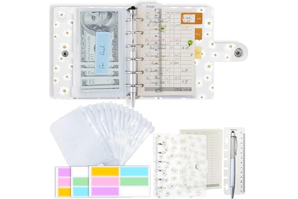 with Pouch Bags x14, Transparent with Daisy Binder Notebook, Today Bookmark Ruler x1, Accounting Refill Paper x45, Pen x1, Label Sticker x2, Harphia NPNB-139N-A7