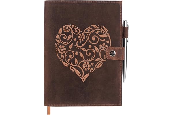 Refillable Leather Journal Lined Notebook - Journals for Women with Embossed Heart Shape