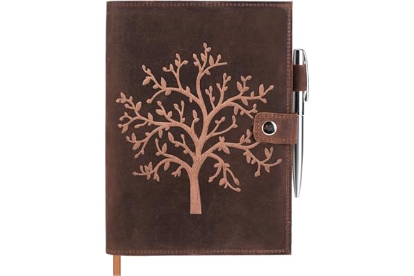 Refillable Leather Journal Lined Notebook - Embossed Tree of Life, Handmade Genuine Leather Notebook for Men & Women with Pen Holder
