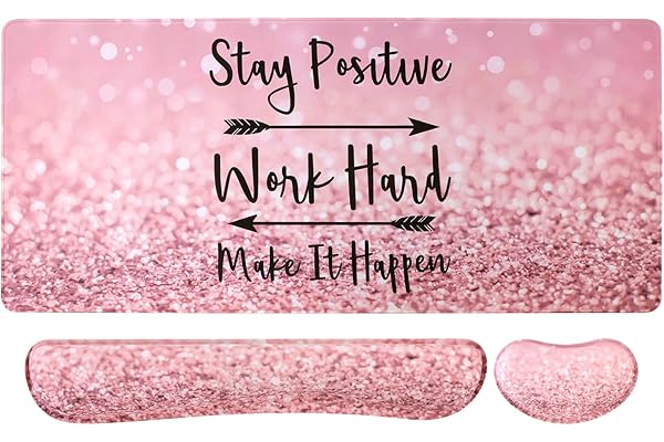 Extended Gaming Mouse Pad+Keyboard Wrist Rest Support , Memory Foam, Easy Typing Pain Relief, 3Pcs (35.4×15.7 in) XXL Ultra Thick Desk Mat -Pink Stay Positive