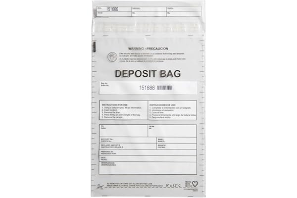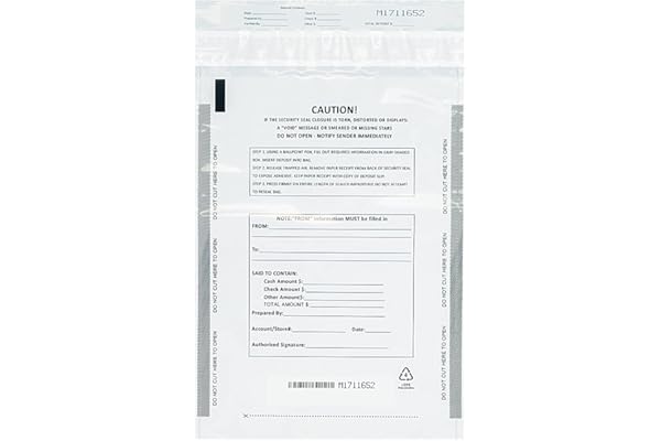 Tamper-Evident Bags, Security Bank Pocket, 9 x 12 Inches