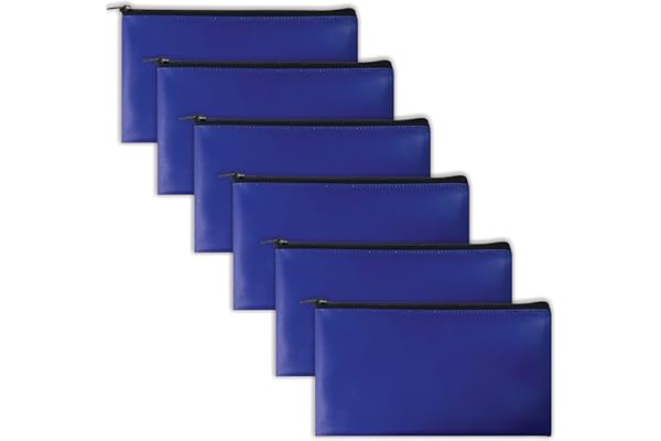 Zippered Security Bank Deposit Bag, by Better Office Products, Leatherette, Cash Bag, Coin Bag, Utility Pouch, Blue, 6 Bags