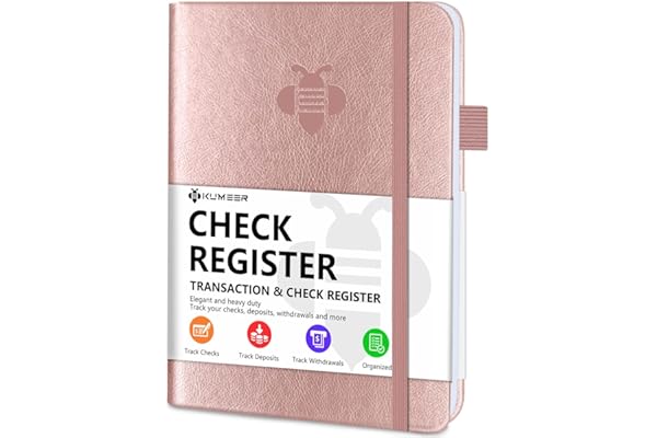 Elegant Check Registers for Personal Checkbook with Check & Transaction Registers, Hardcover Checkbook Log 5.2x7.6" (Rose Gold)