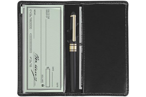 RFID Blocking Check Book Case Card Holder with Free Divider, Standard Register Duplicate Checks with pen inserts by Sanlykate