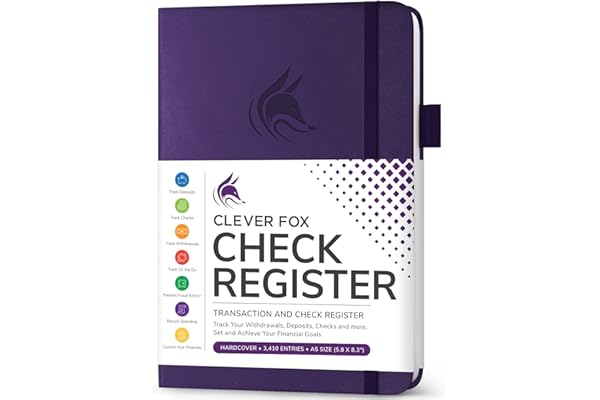 Deluxe Checkbook Log with Check & Transaction Registers, Bank Account Register Booklets for Personal and Work Use, A5 Hardcover - Purple