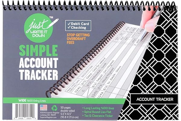 Superior RegisterCheck and Debit Card Register, Simple Account Tracker & Financial Ledger
