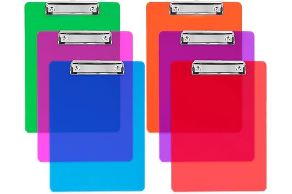 Plastic Clipboards (Set of 6) Multi Pack Clipboard (Colored Assorted) Strong 12.5 x 9 Inch