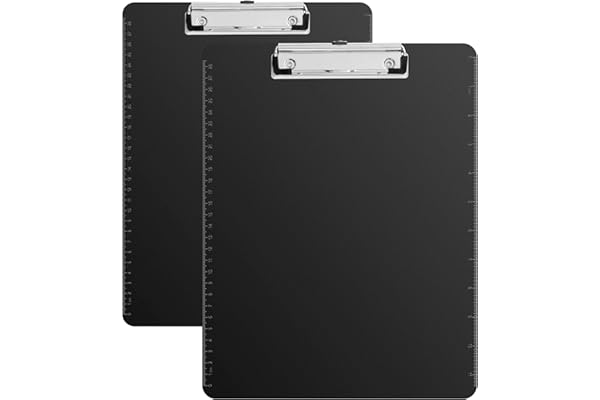Low Profile Clip, Clipboard for classrooms, Offices, Restaurants, Doctor Offices, Black, 2-Pack