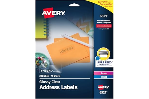 Avery 6521 Glossy Crystal Clear Address Labels for Laser & Inkjet Printers