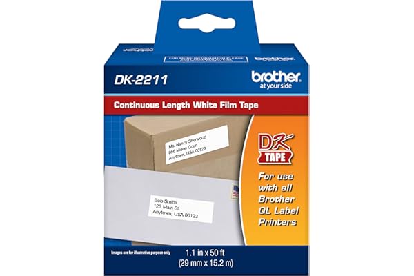 Brother Genuine DK-2211 Continuous Length Black on White Film Tape for Brother QL Label Printers