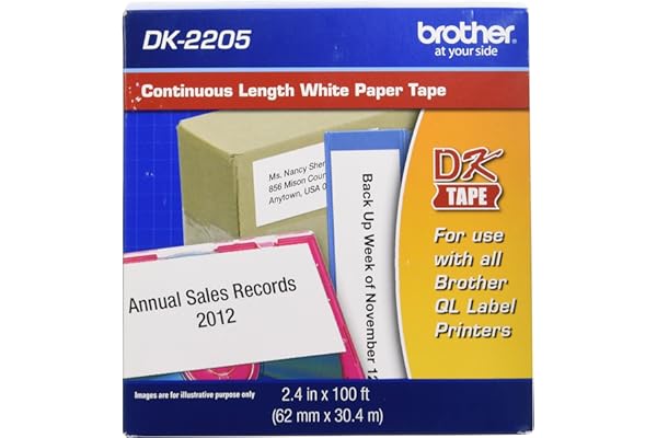 Brother Genuine DK-2205 Continuous Paper Label Roll, Cut-to-Length Label, 2.4” x 100 Feet, 6 Rolls