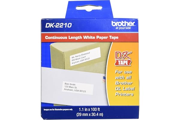 Brother Genuine DK-2210 Continuous Length Black on White Paper Tape for Brother QL Label Printers