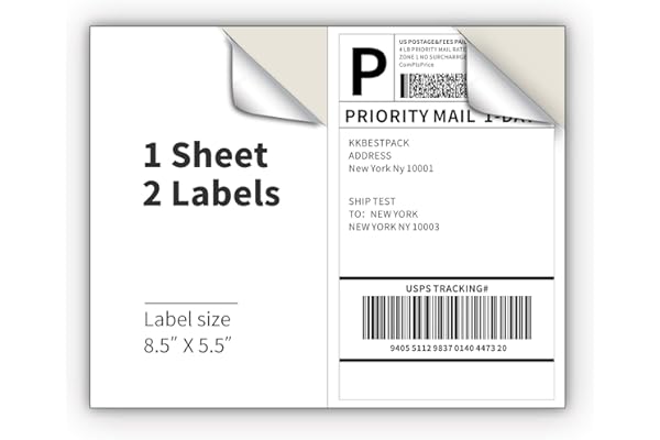 KKBESTPACK Half Sheet Shipping Labels for Laser and Inkjet Printers