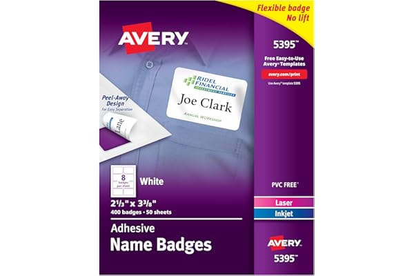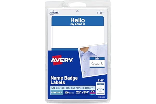 White Rectangle Labels, 400 Removable Name Badges, 2-1/3" x 3-3/8" (5395)