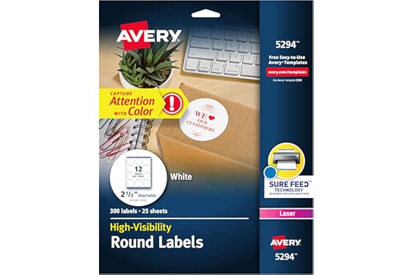 2.5" Diameter, White, 300 Customizable Blank Labels Total (5294)