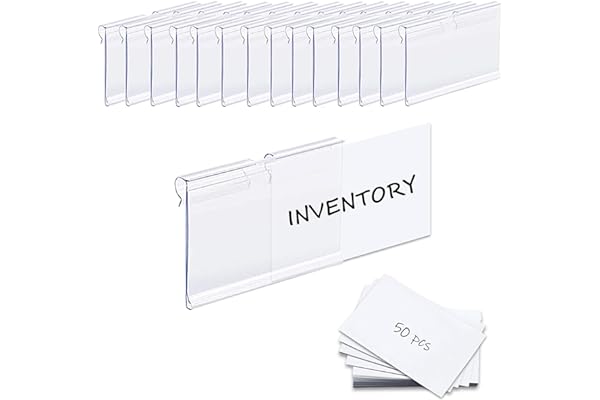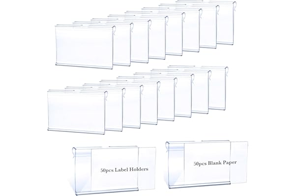 Basket Labels Clip On,50PCS Clear Plastic Bin Clip Labels for Baskets,Wire Shelf Price Labels,Labels for Storage Bins,Merchandise Sign Display Holder,50PCS 6X4CM Label Inserts Included