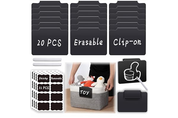54-Piece Set of Basket Labels Clip On For Storage Bins: 20 Erasable Plastic Kitchen Pantry Labels