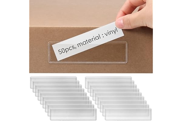 Label Holders Adhesive Shelf Tag Clear Pockets Holder 1.2 x 4.3 Inch for Bookshelf Mailbox Business Students (50 Pack)