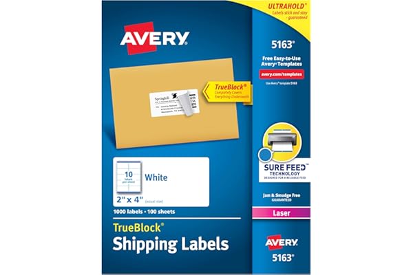 Laser Printers, 1,000 Labels, 2x4 Labels, Permanent Adhesive, TrueBlock (5163)