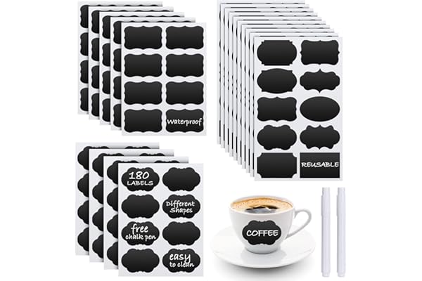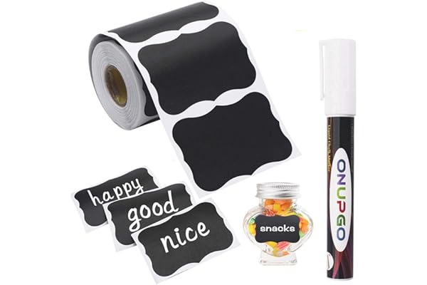 ONUPGO Chalkboard Labels-180pcs Waterproof Reusable Blackboard Stickers with 1 Liquid Chalk Marker for Mason Jars