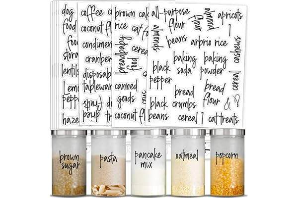 Reusable, Removable, and Waterproof Food Labels for Kitchen and Pantry Containers, Mason Jars, Kids' Bottles, and Storage Bins
