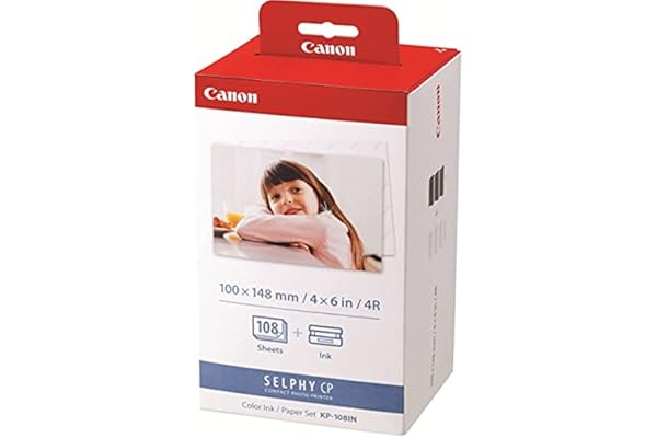 Canon KP-108IN 3 Color Ink Cassette and 108 Sheets 4 x 6 Paper Glossy for SELPHY CP1300, CP1200, CP910, CP900, CP760, CP770, CP780 CP800