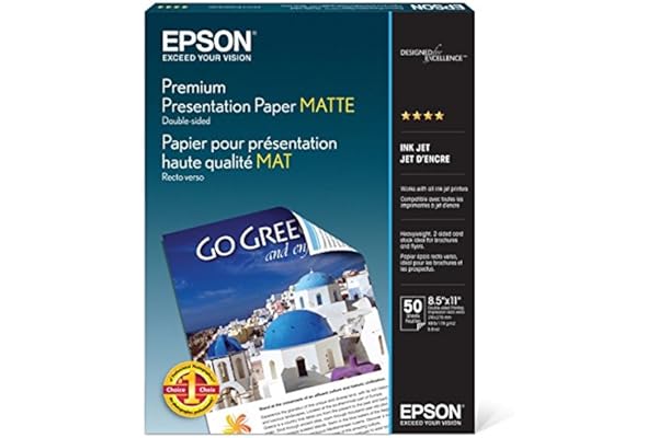 Epson Premium Presentation Paper MATTE (8.5x11 Inches, Double-sided, 50 Sheets) (S041568),Bright White