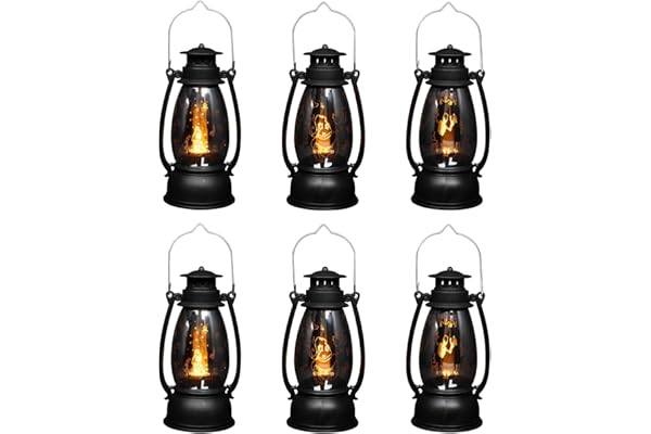 Reperla Halloween Lantern 6-Pcs Mini Lantern LED Vintage Small Lanterns Indoor Outdoor Hanging Lanterns Decorative Candle Lanterns Farmhouse Gothic Home Table