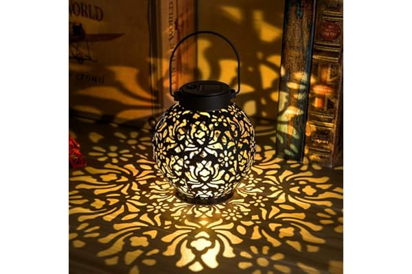 2 Pack Outdoor Solar Hanging Lantern Lights Metal LED Decorative Christmas Light for Garden Patio Courtyard Lawn and Tabletop with Hollowed-Out Design