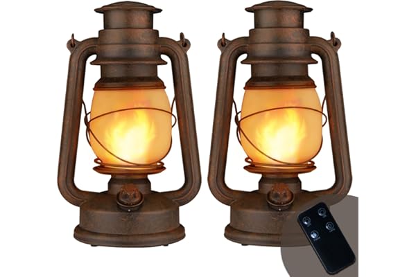 LED Vintage Lantern Battery Operated Cabin Decor Halloween Pirate Lantern Flickering Flame Rustic Hanging Lantern with Remote for Indoor Outdoor Garden Patio Yard Home Decor