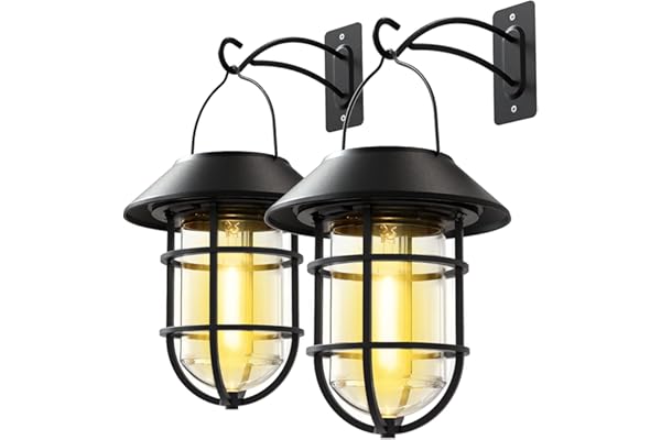Waterproof Metal Solar Outdoor Lights with Clear Glass, LED Edison Bulbs Decorative Wall Lantern with Hooks, No Wiring Required, 2 Pack